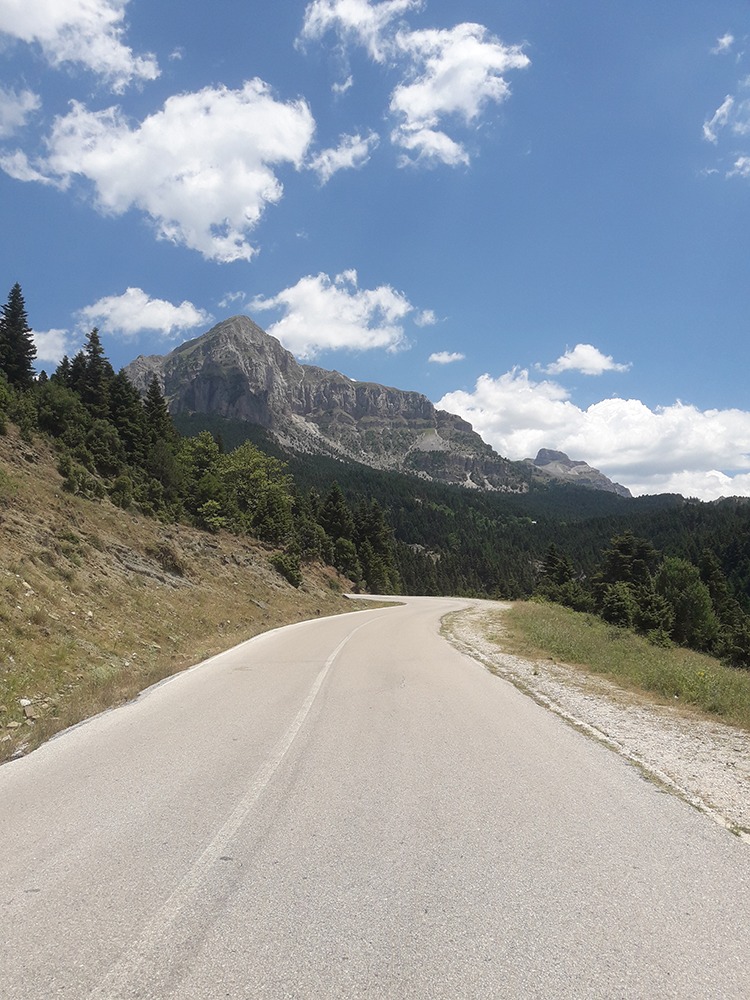 Leaving Veria behind, the journey begins to climb as the route follows the course of the Aliakmonas River. The landscape gradually changes from open plains to rolling hills, with long, steady ascents setting the tone for the days ahead.